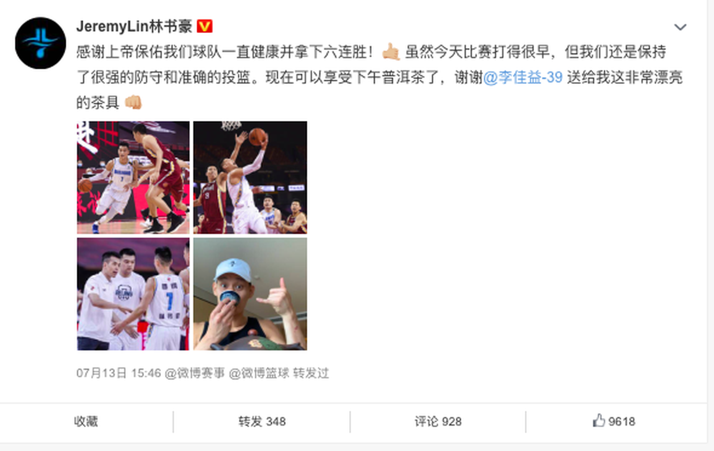 六连胜背后的宁静时刻:林书豪用下午茶品味奋斗的甘甜